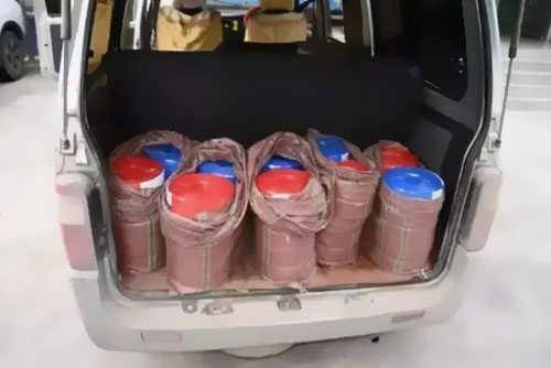 民警經(jīng)過作業(yè),發(fā)現(xiàn)兩名嫌疑人在四街鎮(zhèn)某飯館并前往抓捕。在四街派出所民警的幫忙下,將正在吃飯的兩名犯罪嫌疑人陳某(男,45歲)和楊某(男,37歲)成功捕獲。隨后,民警從嫌疑人駕馭的微型面包車?yán)锼殉隽撕芏嗟碾娋€,拆開一看,發(fā)現(xiàn)只要最外層的是真的,而里邊滿是實(shí)心的水泥塊。