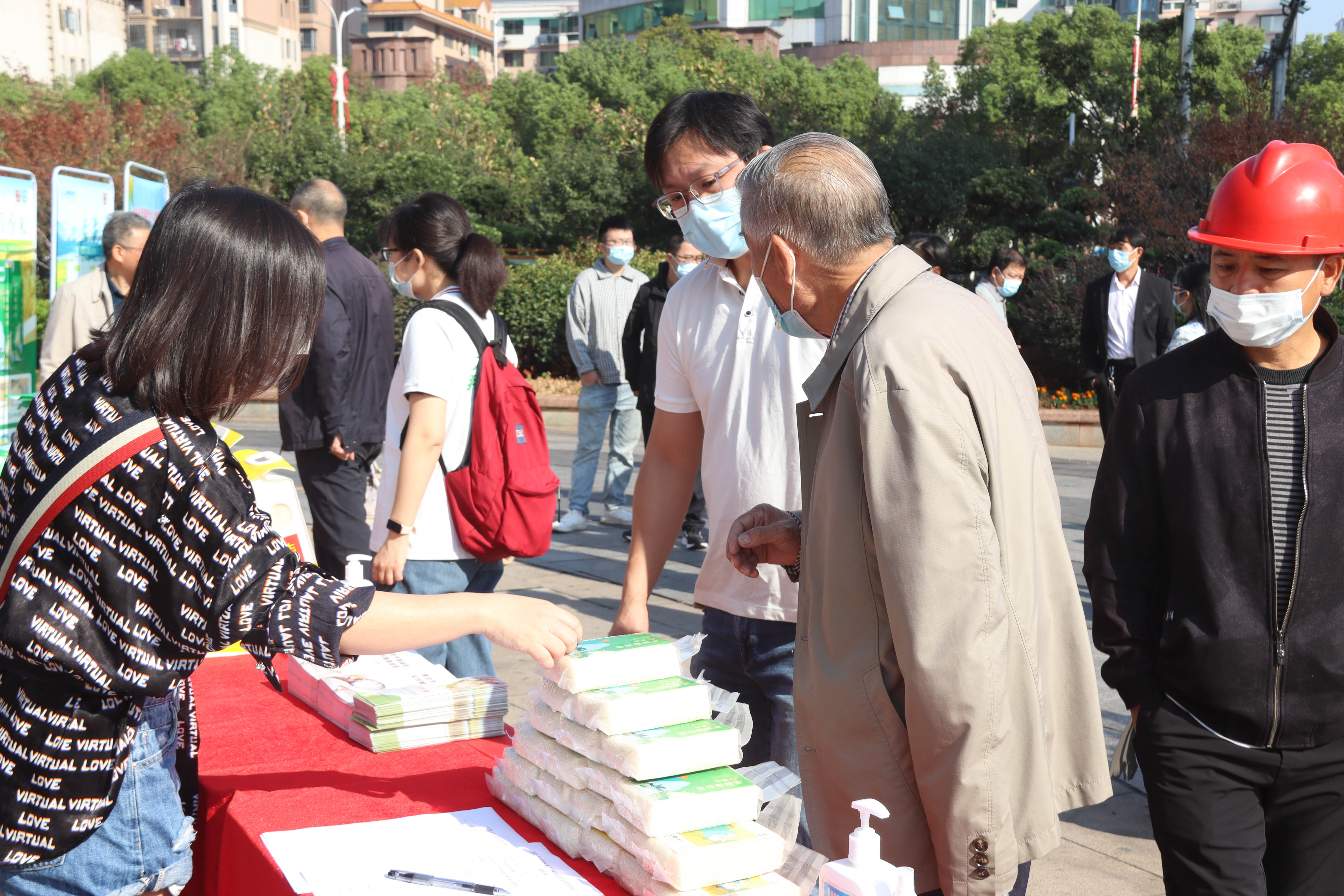 今年10月16日是第42個世界糧食日,主題是“不讓任何人掉隊。更好生產(chǎn)、更好營養(yǎng)、更好環(huán)境、更好生活”?;顒蝇F(xiàn)場布置了咨詢點和宣傳展板,志愿者們向群眾發(fā)放宣傳手冊,普及糧食安全法律法規(guī),介紹放心糧油相關(guān)知識,講解鑒別優(yōu)質(zhì)糧油方法,推行“厲行節(jié)約、反對浪費”的良好社會風(fēng)尚。